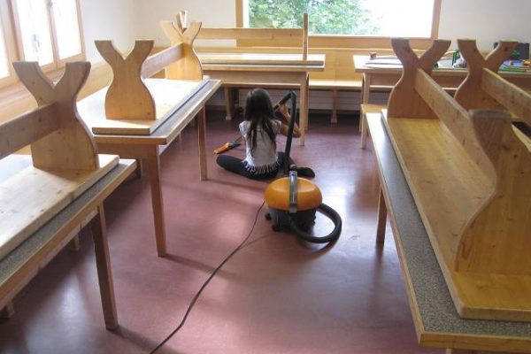Wir haben unsere Aufgaben gelöst. Wir mussten die Tische abräumen, Geschirr abwaschen oder sind für den Tagesbericht eingeteilt. Das ist gar nicht so schlimm, ausser wir sind mit jemandem eingeteilt, der immer jammert.