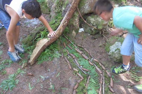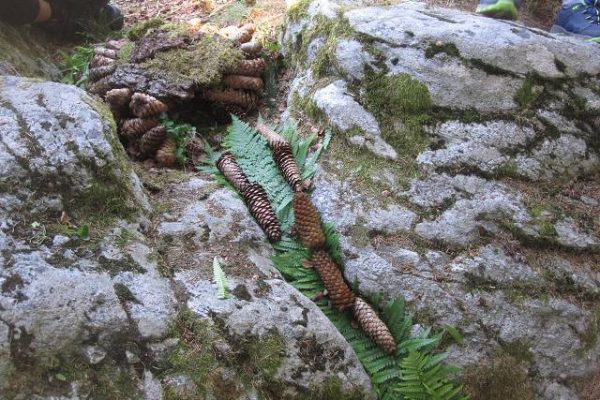 Beim Zwergenhäuschen-Wettbewerb war es spannend. Wir brauchten Tannenzapfen, Farn, Kohle, Steine, Sand, Moos, Stecken und Blumen. Alle Gruppen waren toll.