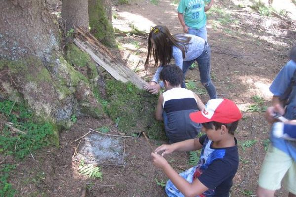 Dann mussten wir einen zweiten Ameisenauftrag erledigen. Wir haben den Ameisenhaufen ausgemessen und Strassen und Eingänge gezählt.