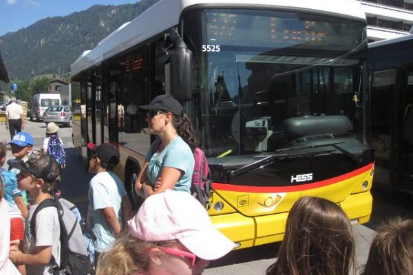 Mit dem Postauto sind wir nach Hause gefahren. Wir haben noch lustige Fotos gemacht.
